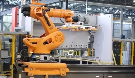 3. Canada Culvert – компания создала принципиально новую линию гофрирования стали, в которой задействованы три робота KUKA KR 1000 titan, расположенных на линейном блоке. Роботы передают от одного пресса к другому тяжеловесное металлическое колено и после обработки прессом укладывают его на паллеты. Благодаря инновационным принципам удается избежать появления напряжения стали.