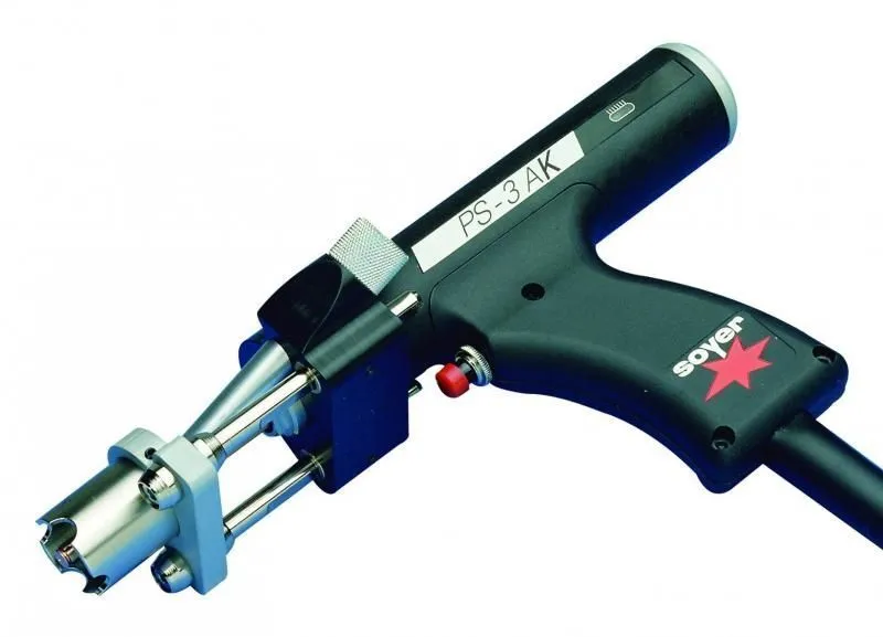 Сварочный пистолет PS-3AK с электронным управлением для приварки метизов контактно конденсаторным способом в соответствии с DIN EN ISO 13918 подходит для поверхносей с царапинами без дополнительной подготовки. Метизы могут подаваться полуавтоматически,вручную или полностью автоматически непосредственно от универсального вибробункера SOYER UVR-300 или UVR-400. подается в держатель шпильки через трубку для подачи. Надежный и эргономичный пистолет для сварки шпилек PS-3A полностью совместим со всеми источниками имеющими подготовку для автоподачи.