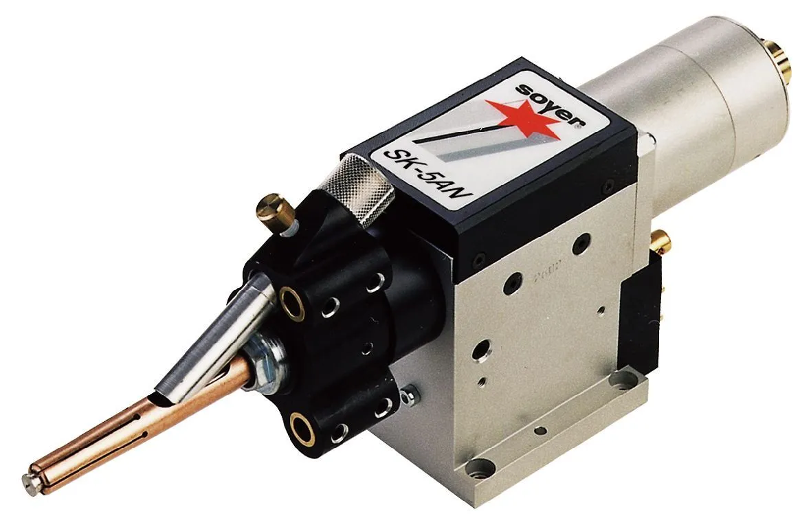 Компактная головка SK-5AN для сварки метизов .Компактные габариты и небольшой вес, имеет уникальная и запатентованная, полуавтоматическая система подачи шпилек (патент № 0406459).