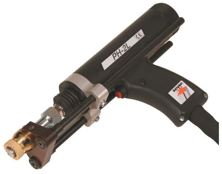 Недавно разработанный, чрезвычайно прочный и долговечный, пистолет PH-2L для приварки шпилек, специально предназначен для применения в самых тяжелых эксплуатационных условиях. Этот пистолет для приварки метизов позволит Вам приваривать сварочные метизы и штифты максимально до 16 мм в диаметре с помощью процессов электродуговой сварки и электродуговой сварки с коротким циклом. Автоматическая система компенсации длины метизов, компенсирующая отклонения в длинах привариваемых метизов и обеспечивающая условия сварки, а также система масляного демпфирования для управляемого погружения метизов с минимальным диаметром от 12 мм, гарантирует высококачественные сварные соединения метизов. Система масляного демпфирования может быть как включена, так и отключена