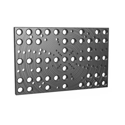 Крепежная плита для фланцев 550 крепится к деталям Siegmund (напр. к угольникам) при помощи зажимных болтов. Фланцы могут быть размещены на плите при помощи фиксирующих болтов. Большие возможности открываются благодаря 28 мм отверстиям, которые позволяют закреплять различные элементы.