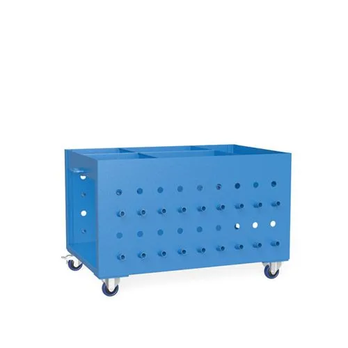 Компактная тележка для инструмента обеспечивает достаточное пространство для размещения инструмента. Элементы всегда находятся у вас на виду и под рукой, а большие и громоздкие угольники могут храниться внутри. Тележка снабжена колесиками, так что ее можно быстро перемещать от одного рабочего места к другому. Также ее можно разместить под сварочным столом.