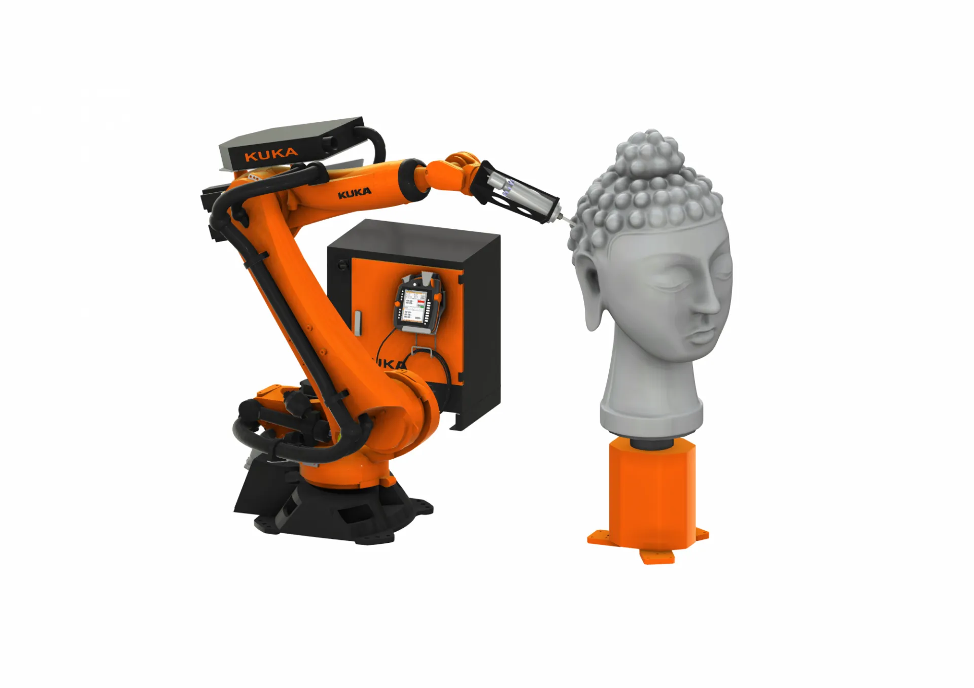 Данный роботизированный комплекс позволяет осуществлять фрезеровку объемных фигур, как в художественных, рекламных целях, так изделия промышленного назначения.