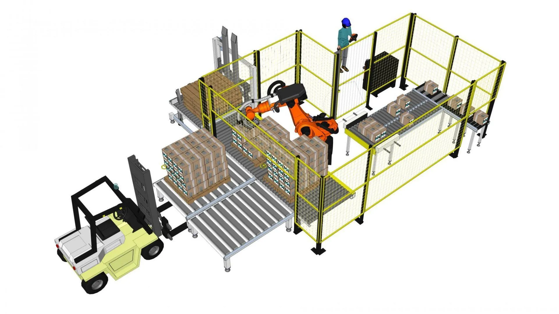 Роботизированный комплекс для паллетирования – востребованное решение для укладки готовой продукции на поддоны. Данный комплекс позволяет заменять в среднем до 9 человек рабочего персонала.
