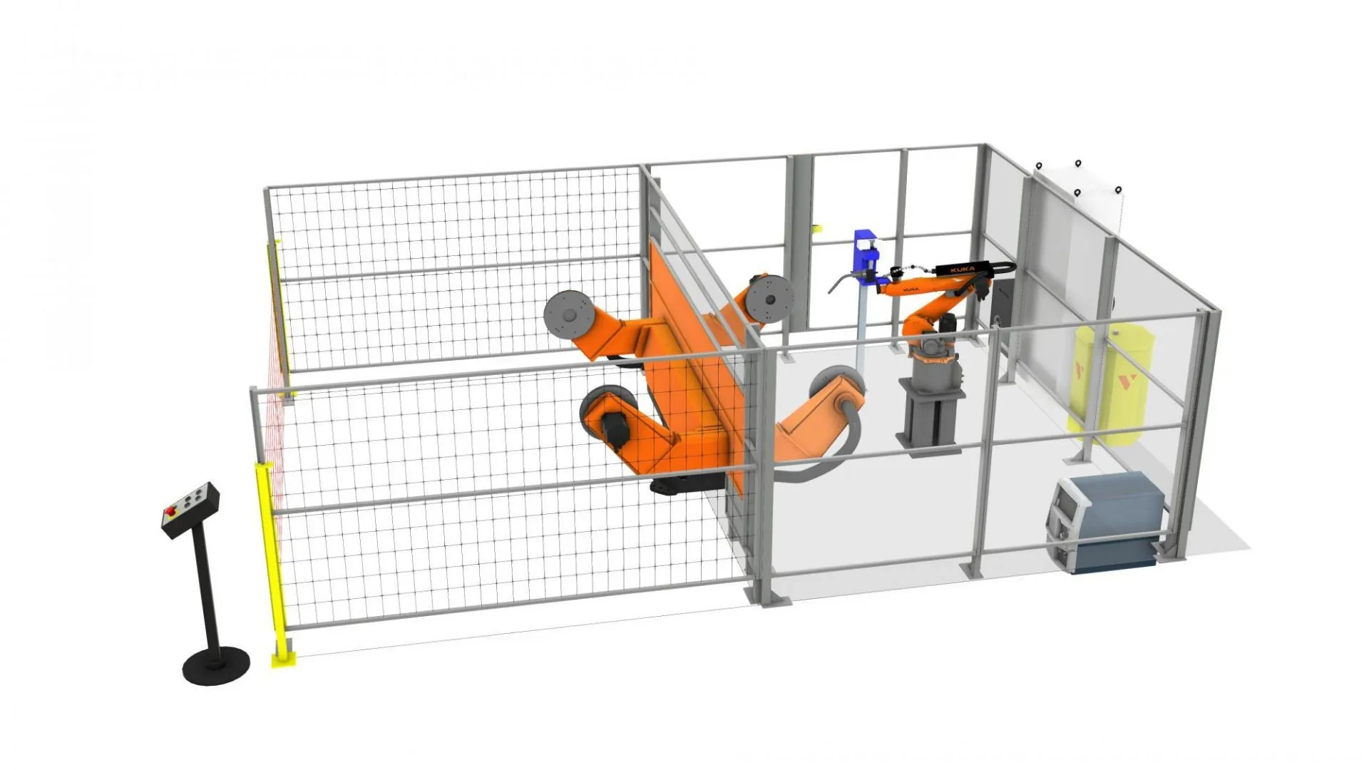 Данный роботизированный сварочный комплекс позволяет сваривать объемные изделия. Благодаря вращению заготовки вокруг горизонтальной оси возможна сварка в разных плоскостях. Третья ось вращения позиционера обеспечивает быструю смену рабочих мест, что позволяет использовать комплекс безостановочно и сократить простой оборудования.