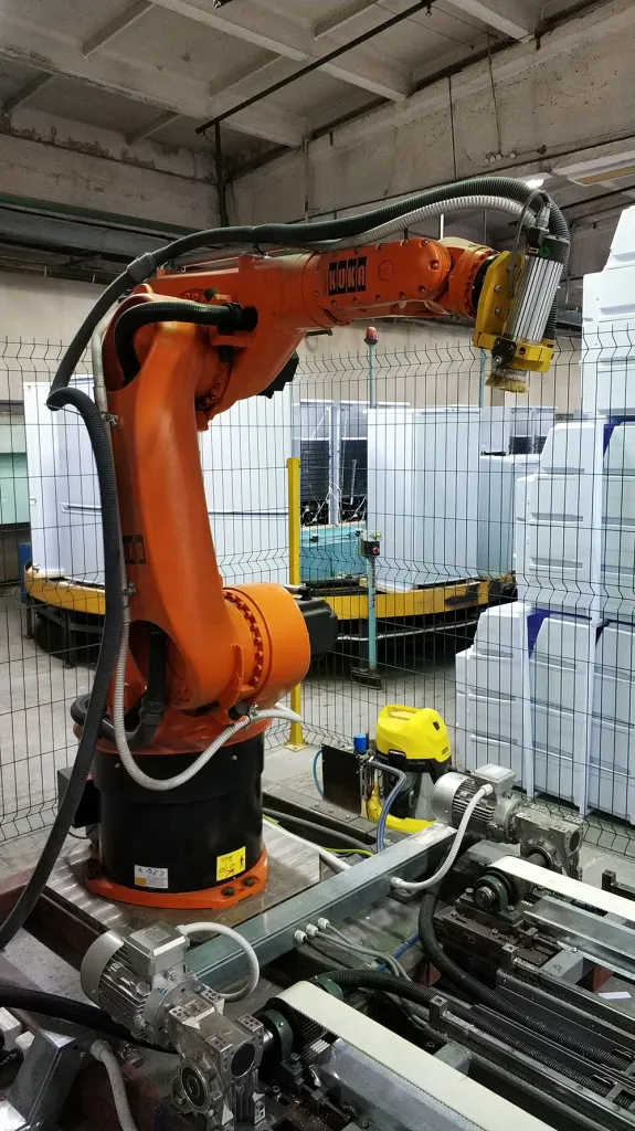 В действующую линию производства пластика для внутренней отделки холодильников и морозильных камер установлено три Робота KUKA KR 60/3, которые задействованы в процессе обрезки пластика после процесса объемного формирования.