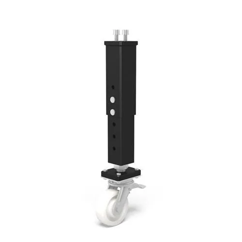 Опора, регулируемая по высоте с роликом и стопором обладает несущей способностью 800 кг и тонкой регулировкой высоты 20 мм.