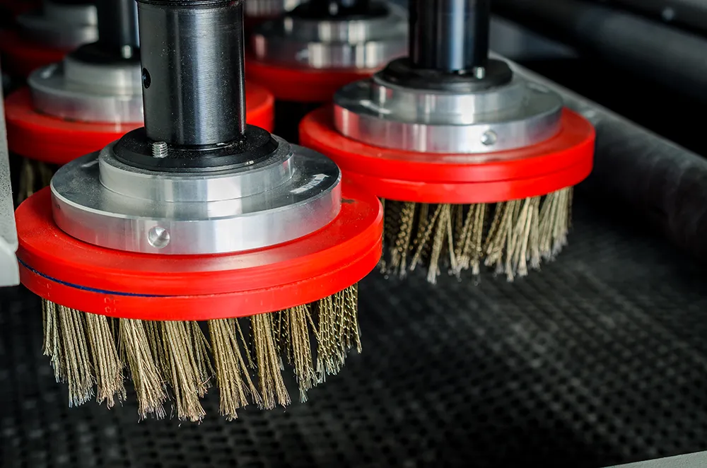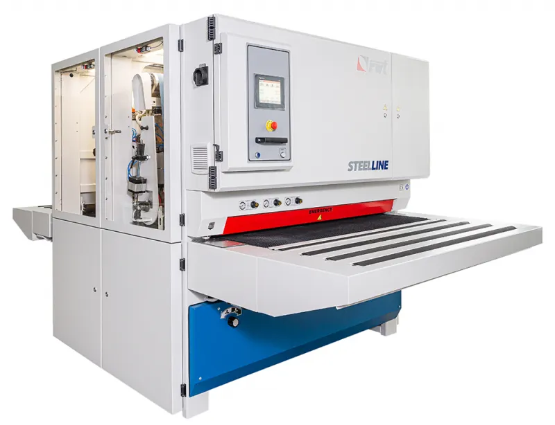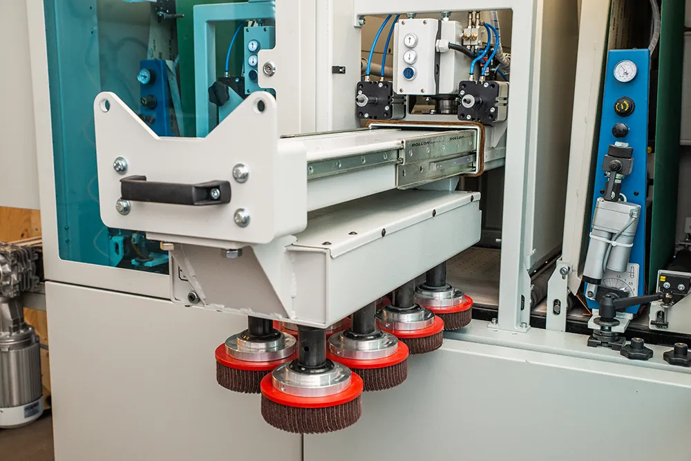 Станок укомплектован двумя рабочими модулями - модулем "R" - бесконечная абразивная лента и модулем "D" - горизонтальные абразивные щетки