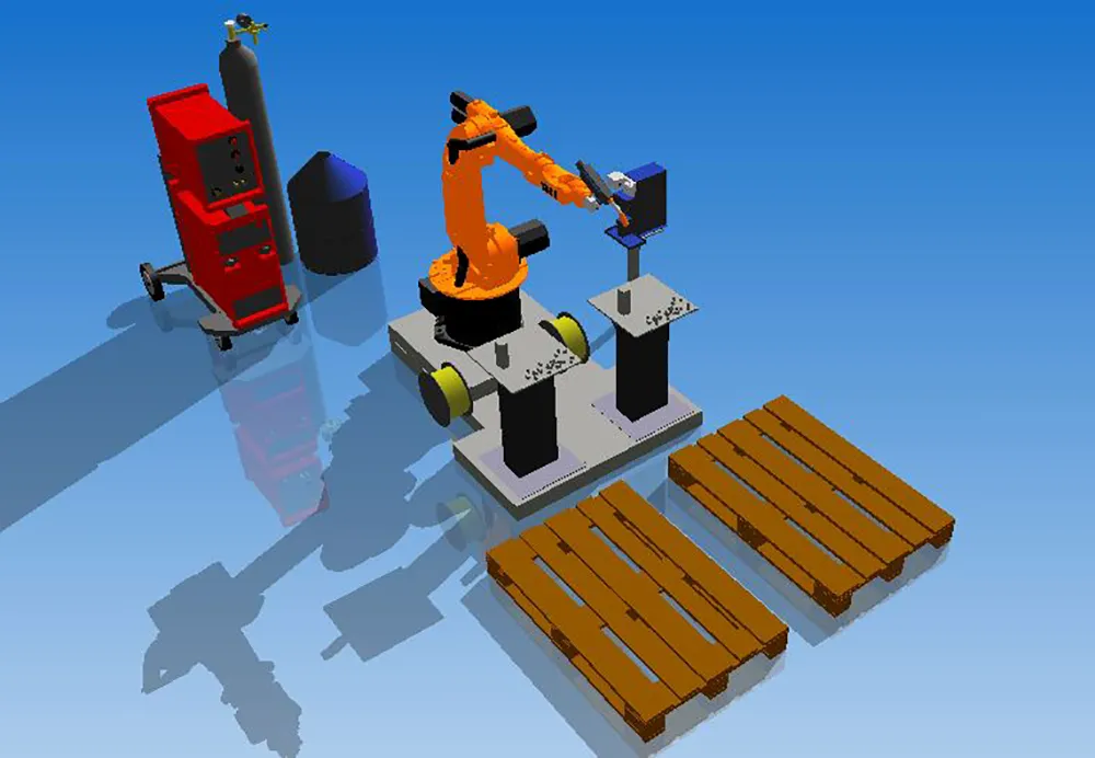 KR 10 R1420 welding robot with manual tooling, LORCH S3 welding machine, two workstations with tooling and DESTACO manual clamps are installed.
