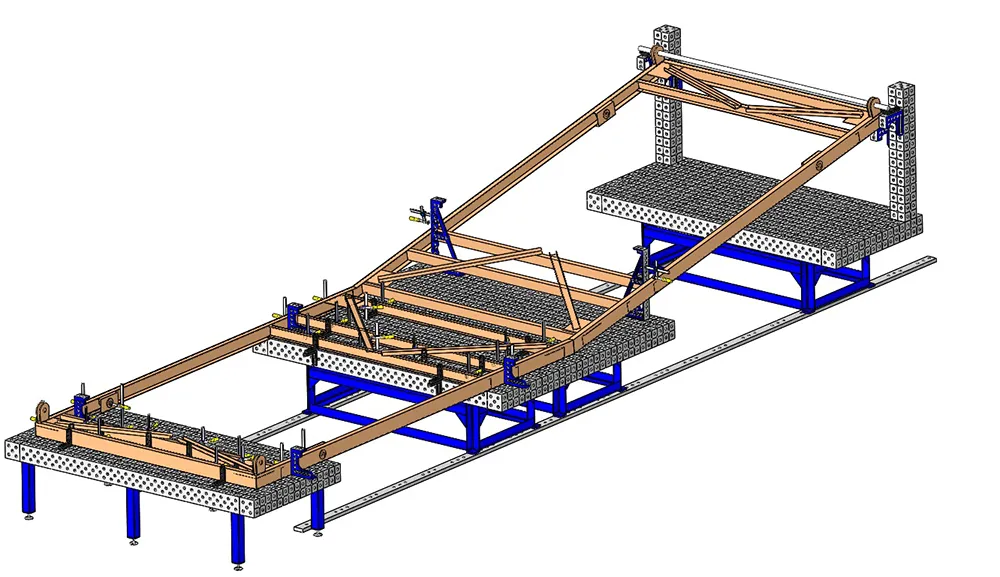 The rail system for assembly and welding of roofs for special cars provides not only work with various products but resetting a bench without lifting equipment.