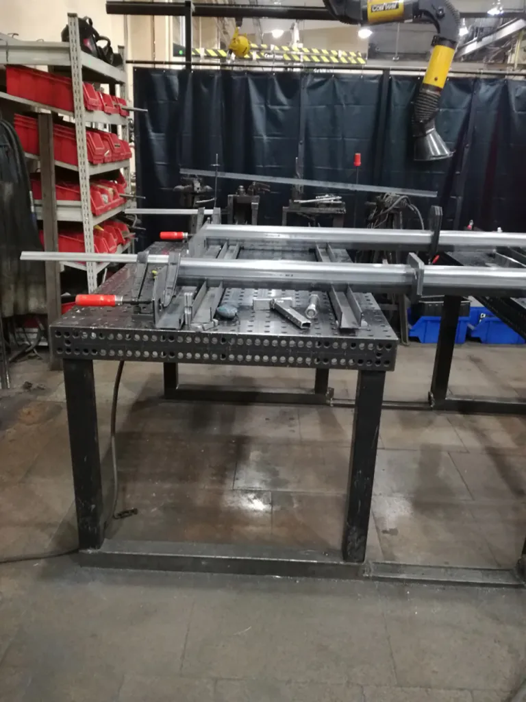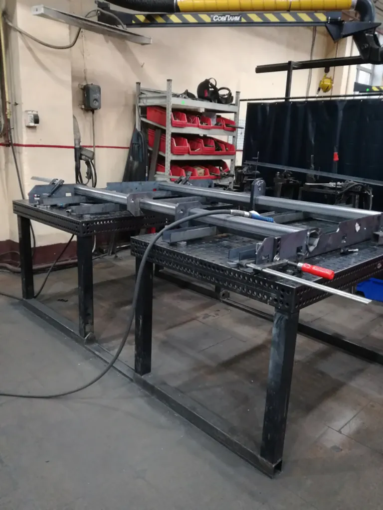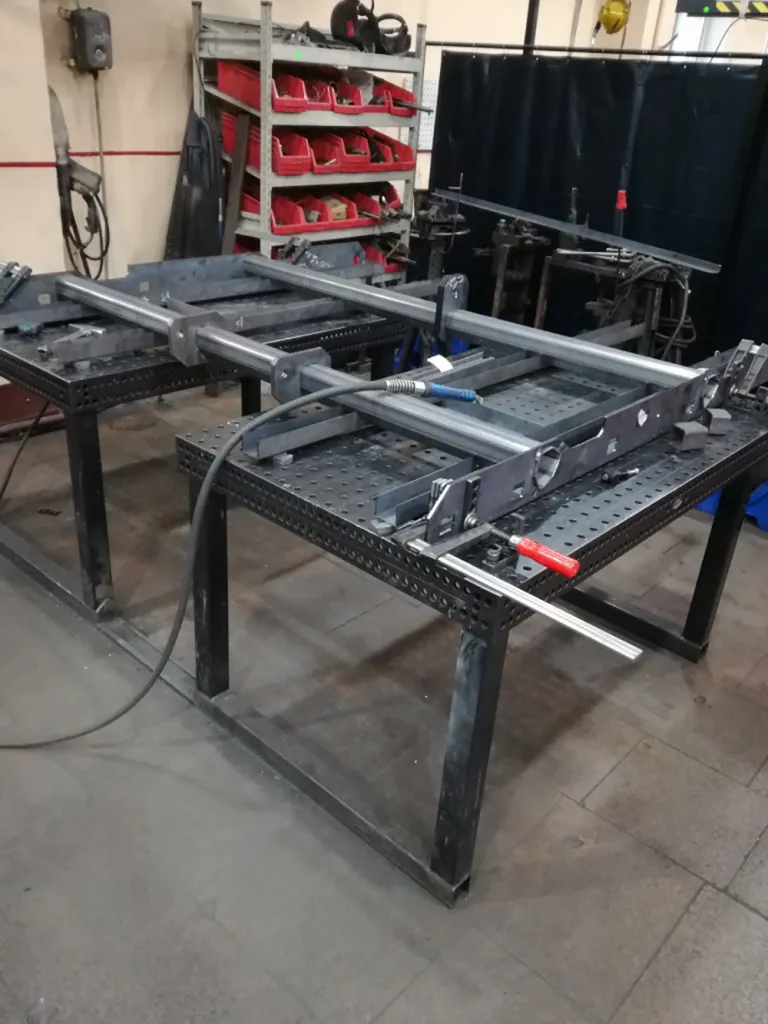 System 16 assembly welding tables are used to assemble semi-trailer axles.