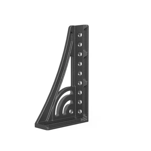 Упорный и крепежный угольник 500 G с поворотным угольником может быть зафиксирован с любой из сторон благодаря наличию отверстий системы и отверстия слота. Угольник может быть использован для увеличения рабочей поверхности стола. Этот элемент изготавливается из высококачественного материала GGG40.