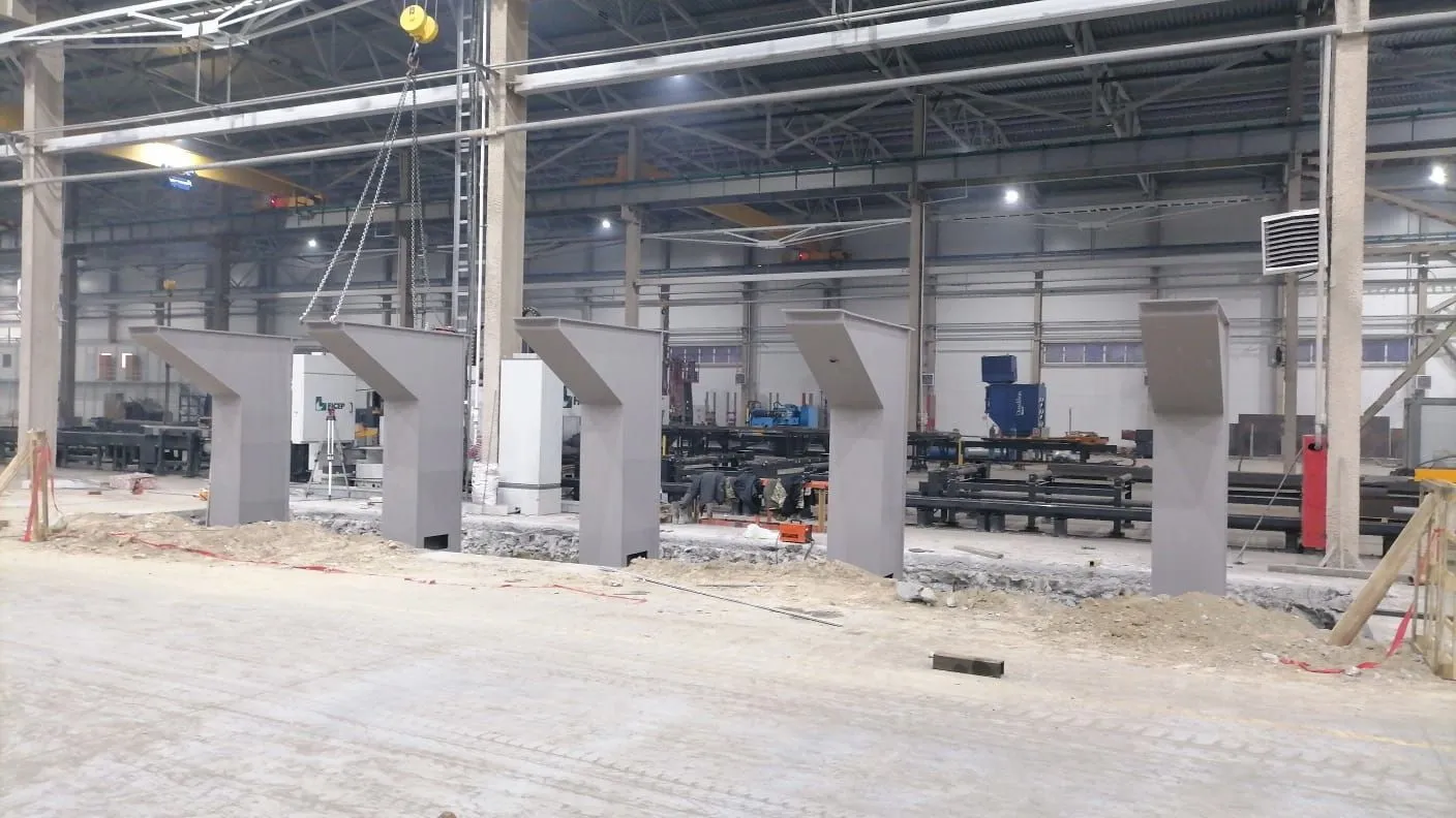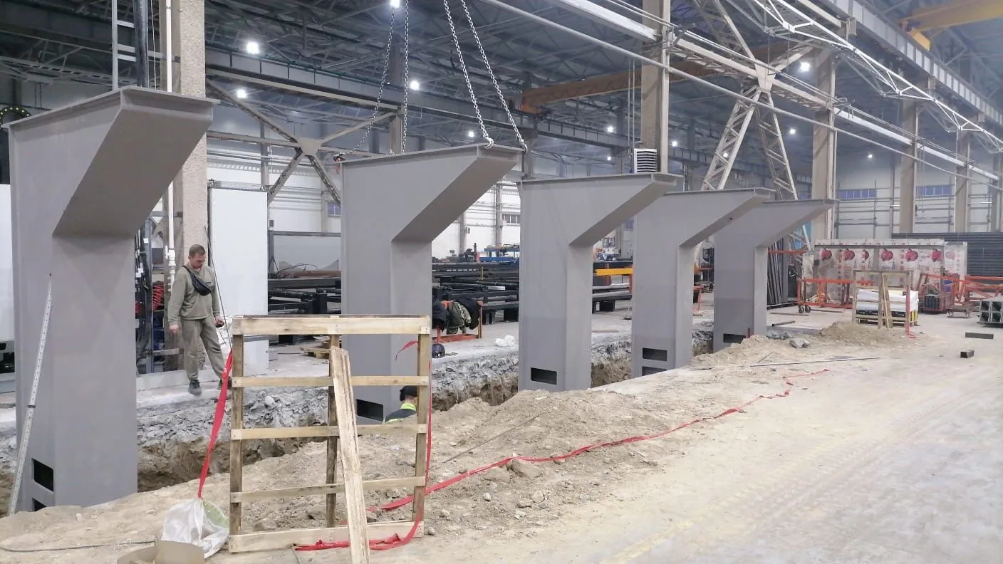 Для начала мы составили 3д модель комплекса, чтобы просчитать досягаемость манипулятора, все нагрузки и ориентировочные временные рамки выполнения задач. Как только мы закончили с чертежами и установили фронт работ, то сразу же перешли к следующему этапу: монтаж опорных колонн, закладка фундамента, а также множественные проверки геометрии, для исключения различных недочетов.
