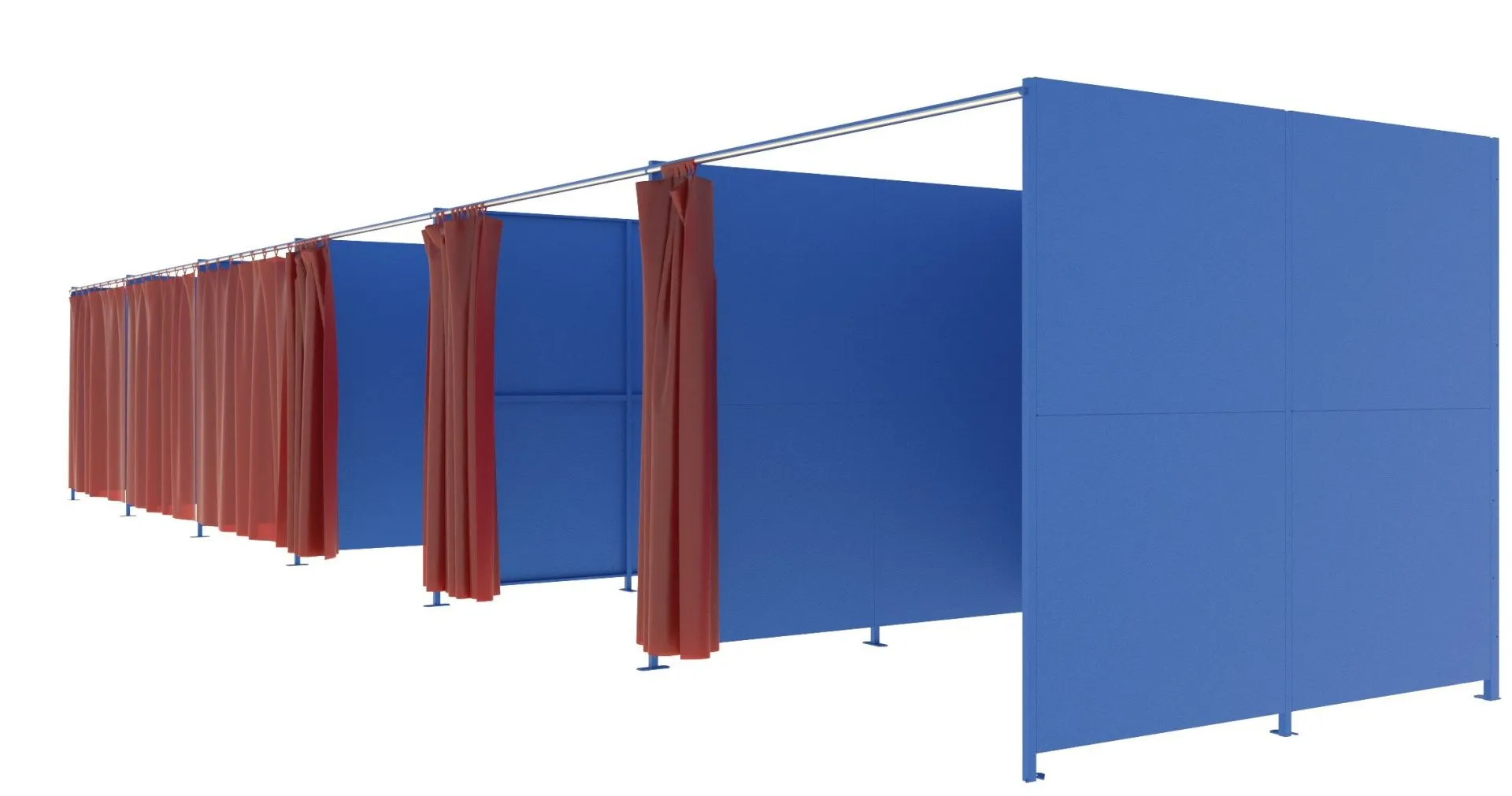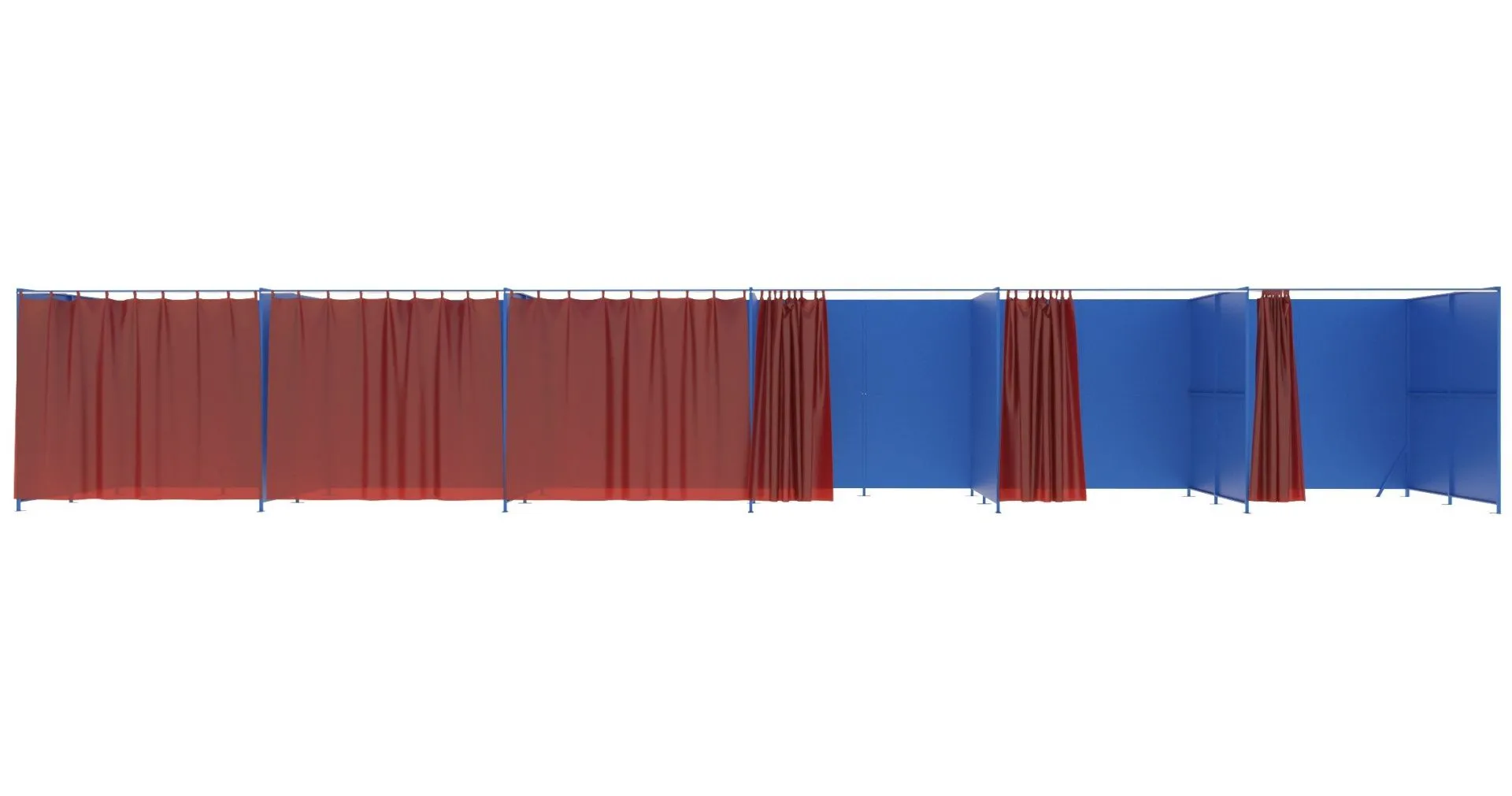 Сварочные кабины (перегородки) предназначены для ограждения индивидуальных рабочих мест, обеспечивая защиту рабочего персонала от воздействия ультрафиолетовых и инфракрасных излучений, искр, брызг, тепла образующихся во время сварки, резки и металлообработки. Сварочная штора используемая в ограждении предназначена для ограждения зоны сварки с целью защиты проходящих мимо людей от опасного ультрафиолетового излучения выделяемого сварочной дугой. Позволяют проникать на участок сварки за счет того, что полосы не закреплены между собой, идеально подходят для создания защищенного входа.