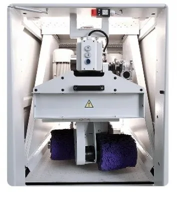 Вращающаяся карусель с 4 абразивными щетками; 2 вращающихся по часовой стрелке и 2 вращающихся против часовой стрелки для равномерного снятия заусенцев и закругления кромок лазерно-плазменной резки, штамповки и механической обработки деталей во всех направлениях. Обработка различных толщин заготовок одновременно (разница до 5 мм) в одной простой установке. Плоские детали, а также детали с выступами и поверхностными формами на верхней и/или нижней гранях детали. Мелкие детали от 100 мм и выше удерживаются стандартным вакуумным столом.