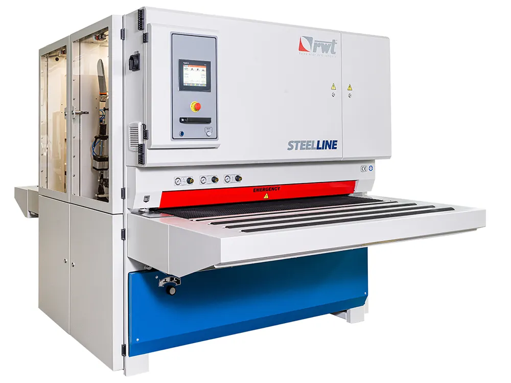 Станок укомплектован двумя рабочими модулями - модулем "D" - горизонтальные абразивные щетки и модулем "R" - бесконечная абразивная лента