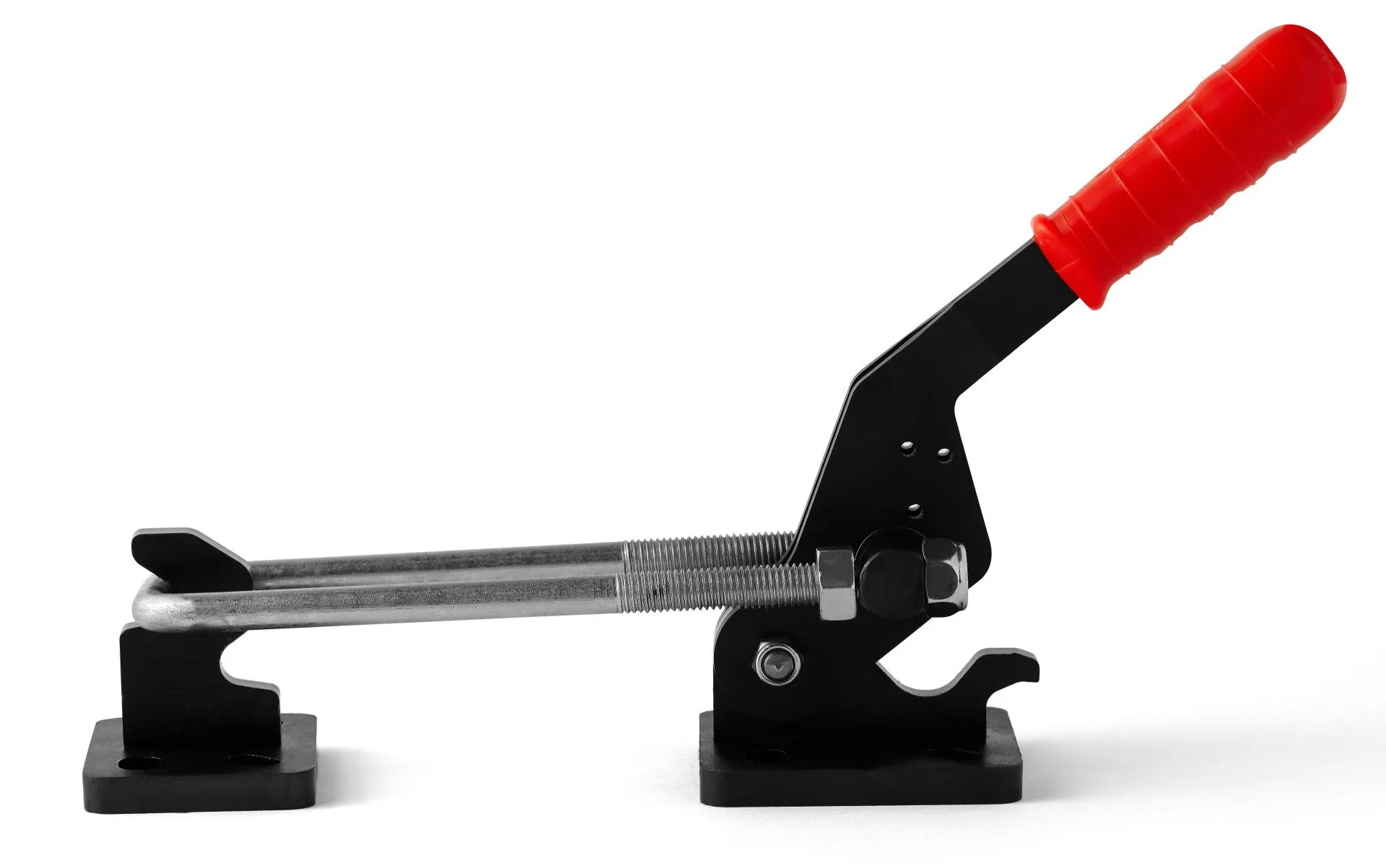 Зажимы для тяжелых условий эксплуатации чрезвычайно прочны, с легкостью справляются с тяжелыми задачами зажима. Зажимы с горизонтальной защелкой с U-образным крюком имеют тяговое движение. Серия Y может быть установлена с горизонтальным основанием. Регулируемое рабочее расстояние U-образного крюка (ход). Этот тип Из хомутов обычно используются крышки крышек и дверей машин.