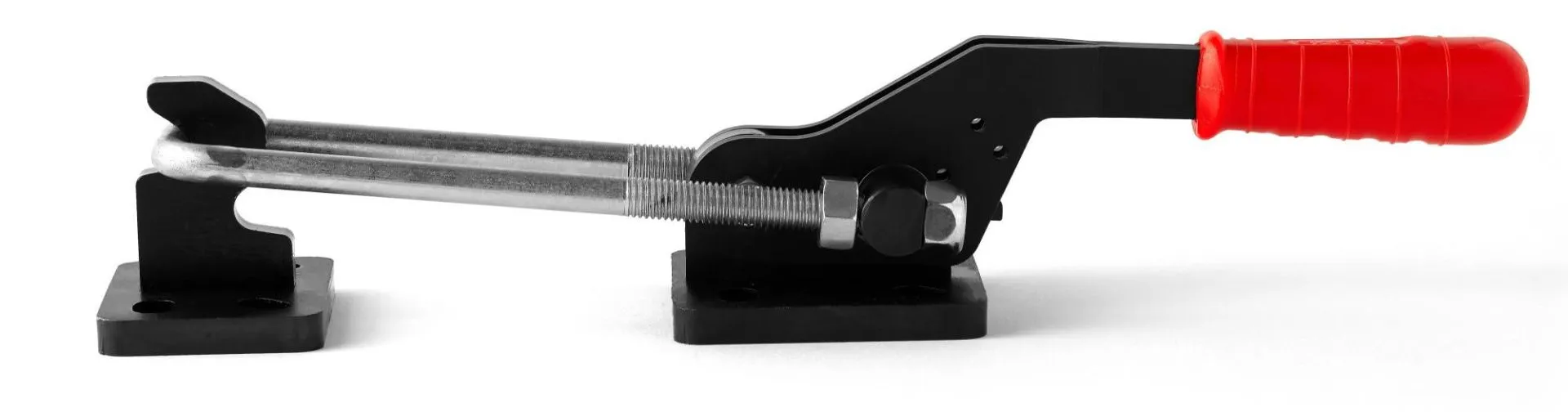 Зажимы для тяжелых условий эксплуатации чрезвычайно прочны, с легкостью справляются с тяжелыми задачами зажима. Зажимы с горизонтальной защелкой с U-образным крюком имеют тяговое движение. Серия Y может быть установлена с горизонтальным основанием. Регулируемое рабочее расстояние U-образного крюка (ход). Этот тип Из хомутов обычно используются крышки крышек и дверей машин.