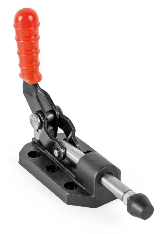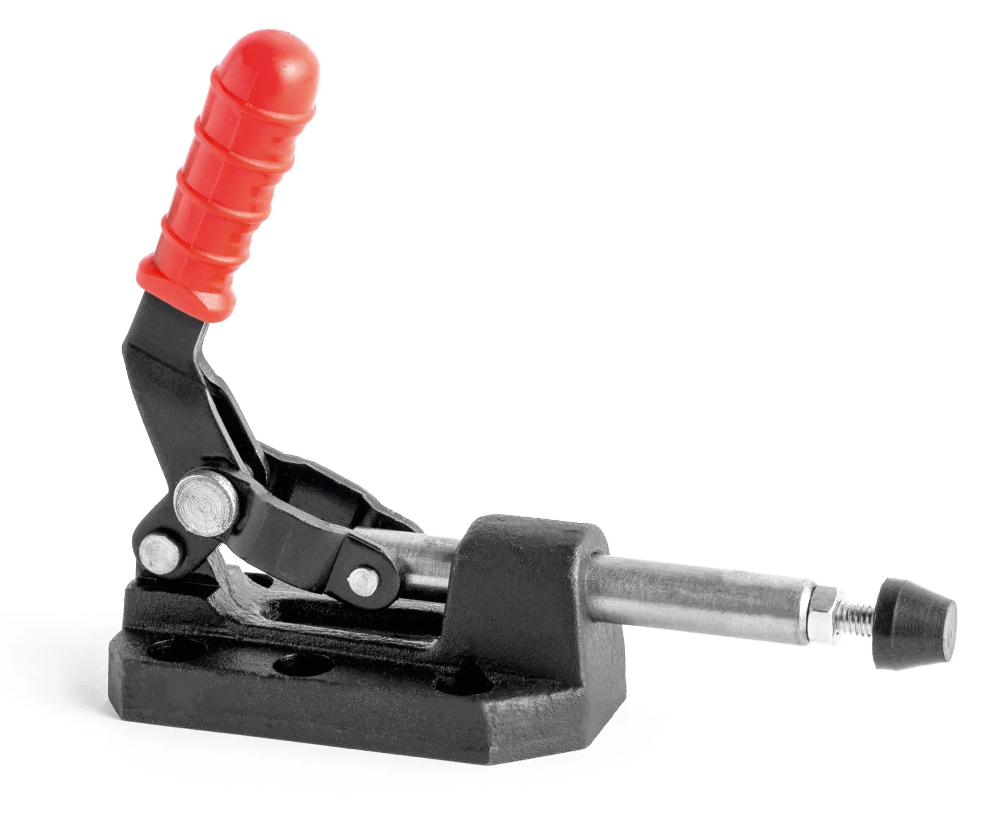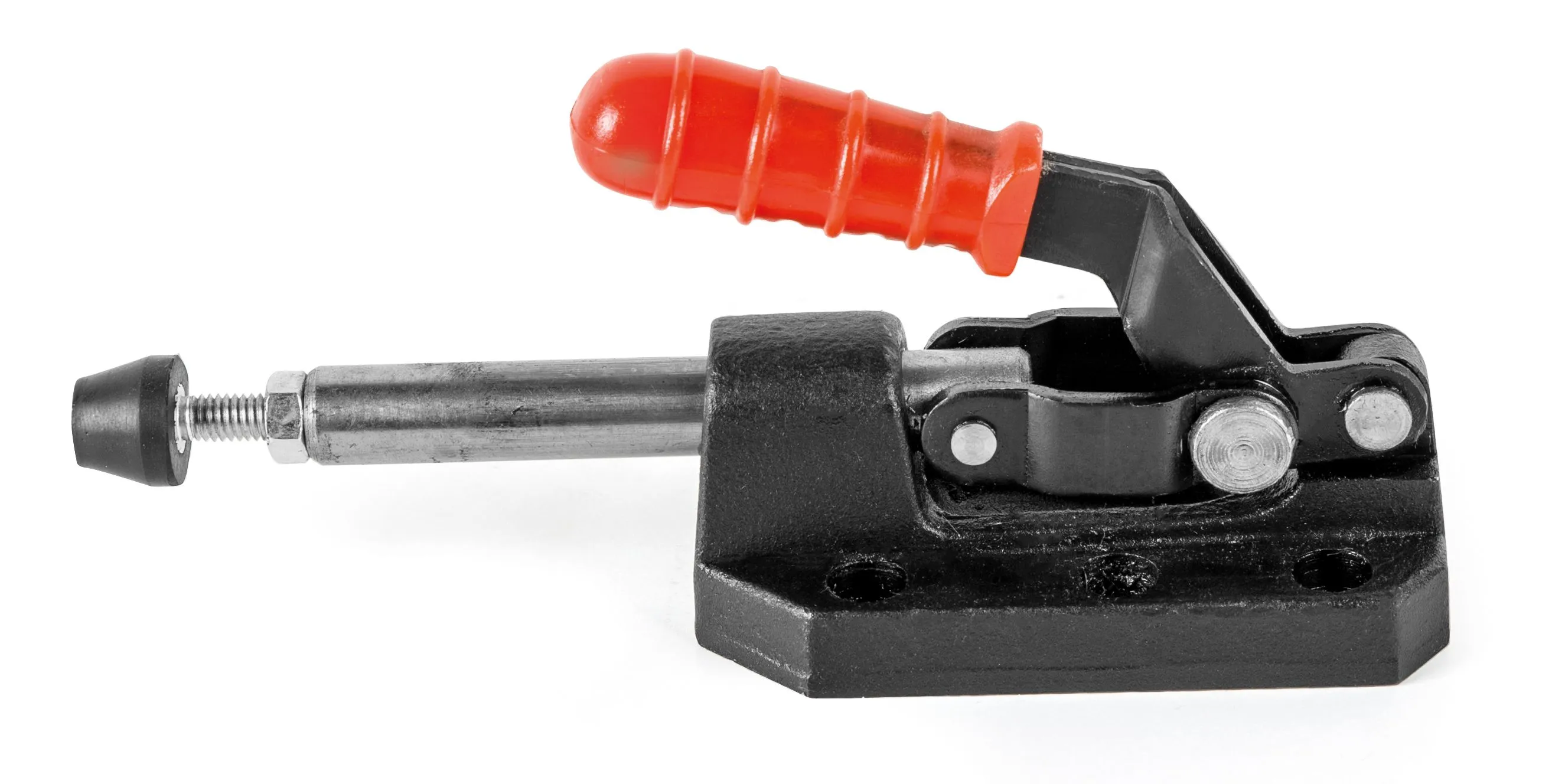 Прямолинейные защелки для тяжелых условий эксплуатации имеют равномерное линейное перемещение. Сверхпрочная конструкция поковки из легированной стали не вызывает проблем. По этой причине зажимы из кованой стали особенно предпочтительны для сварки, фрезерования и многого другого. Регулируемое рабочее расстояние сжимающей части (ход). Этот тип зажимов используется для контрольно-сборочных приспособлений, сварочных приспособлений, деревообработки. Для неотражающих свойств в измерительных лабораториях по запросу может быть изготовлен черный цвет.