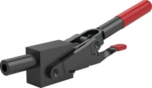 Зажимы с прижимным действием Destaco серии 5000 имеют высокопрочный кованый зажимной рычаг для тяжелых условий эксплуатации, шарнирные пальцы / втулки из закаленной стали для длительного срока службы и покрытие из черной оксидной пленки. Обычно эти зажимы применяются в сварочных и сборочных приспособлениях, а также в легкой механической обработке.