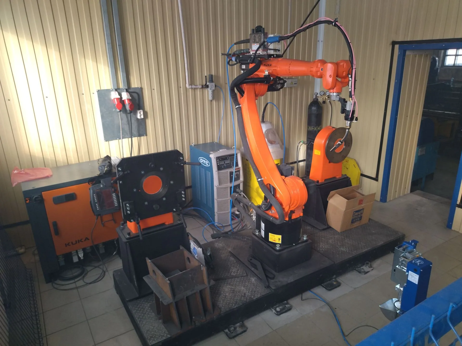 На производстве железобетонных изделий был установлен сварочный робот KUKA с двумя рабочими местами, оснащёнными одноосевыми вращателями, сварочный аппарат ОТС Р500L и станция очистки сварочной горелки.