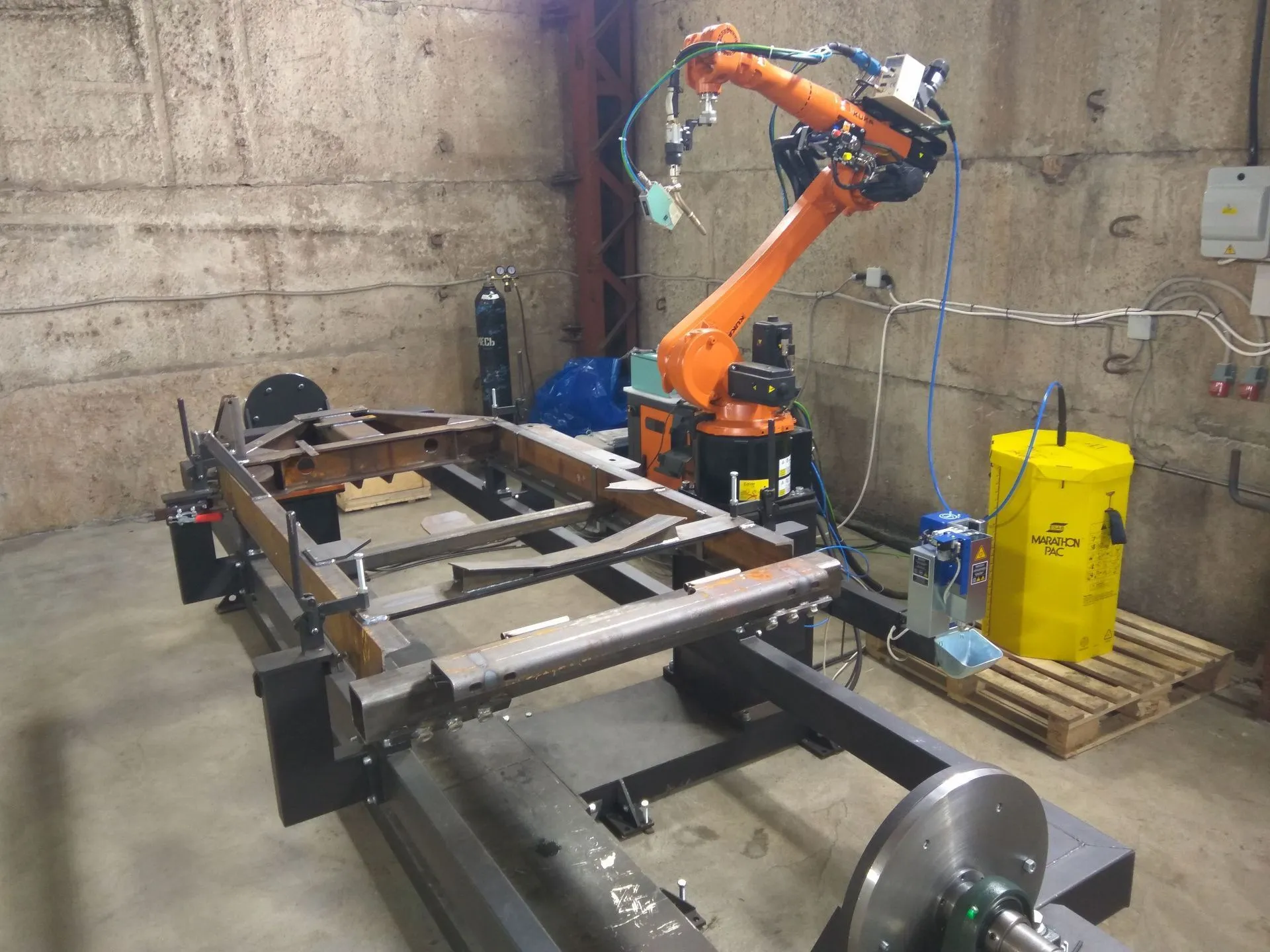 Для сварки рам сельхозоборудования использован комплекс на базе робота KUKA KR8r2010, позиционера KUKA KP1MD500, а также сварочного оборудования для роботизированной сварки OTC Daichen.