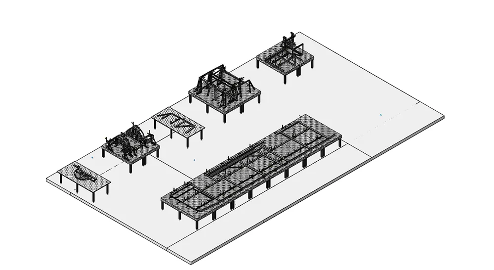 Сборка кузовов различных крупногабаритных автомобилей – одна из частых задач которую решают на сборочно-сварочных столах и оснастке Siegmund. Данные решения применяются как на этапе прототипов автомобилей, так и при производстве серий. Модульность системы позволяет работать с машинами любых габаритов. В проекте использованы столы и оснастка 28 системы