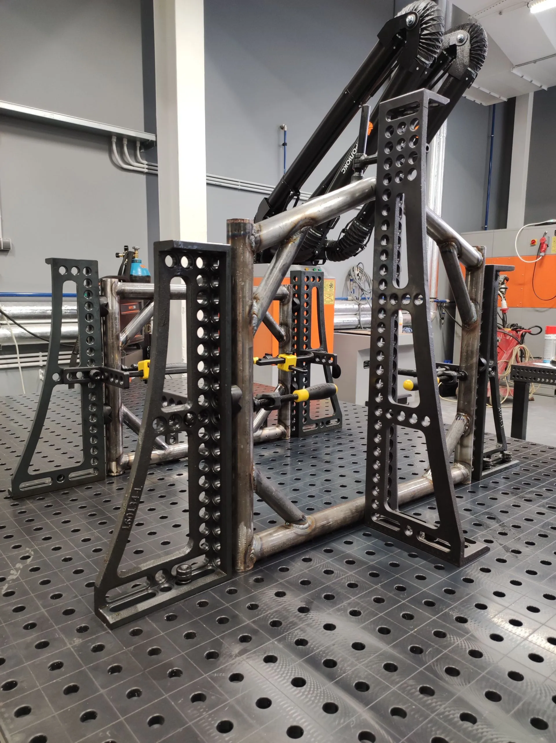 В проекте использованы столы 16 системы — два сварочных стола: 1500х1000 мм и 3000х1500 мм с полным набором оснастки.